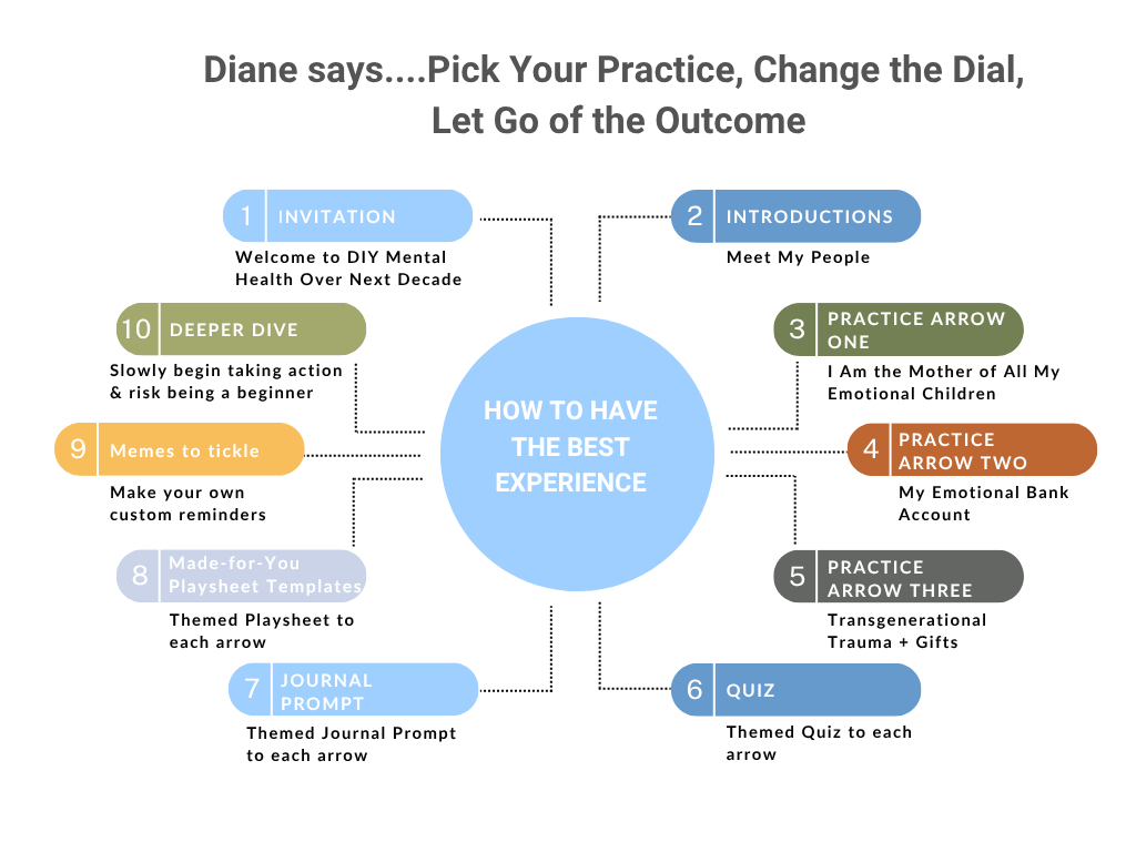 This is the re-parenting no one taught us how to do. Youâll learn how to hold space for your emotional parts (the needy ones, the spicy ones, the ones who still think love must be earned) with compassion and clear boundaries. This arrow brings you into contact with your own inner caregiverâthe one who can listen, soothe, and stay. Youâll stop abandoning yourself and start practicing fierce, gentle self-attunement.